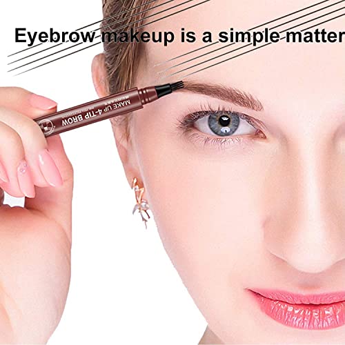 Eyebrow Pen with a 4 Micro-Fork Tip Applicator Creates Flawless Natural Looking Brows, Based on Clear Eyebrow Microblading Pen Waterproof, Long-Lasting, Sweat Resistant, Stays on All Day (Dark Brown)
