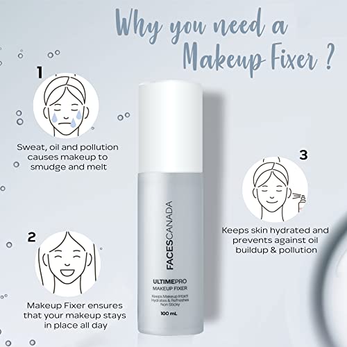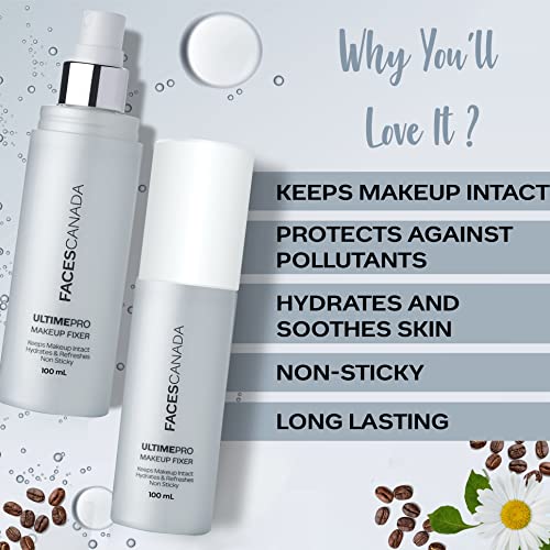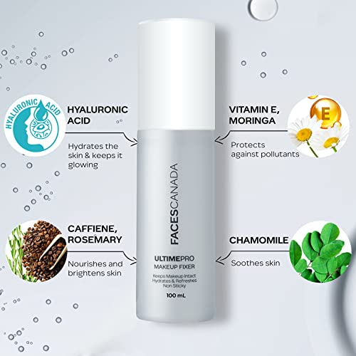 FACES CANADA Ultime Pro Makeup Fixer, 100 ml | Long Lasting Makeup Setting Spray | Keeps Makeup Intact | Hydrates, Soothes & Refreshes Skin | Hyaluronic Acid & Vitamin E Enriched | No Alcohol