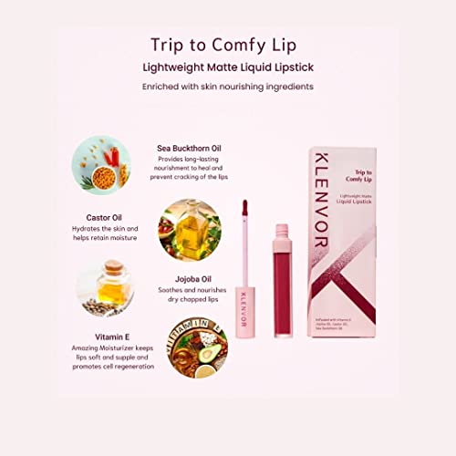 Klenvor Liquid Lipstick | Trip To Comfy Non Drying Transfer And Smudge Proof Vegan & Cruelty Free Toxin Free Long…