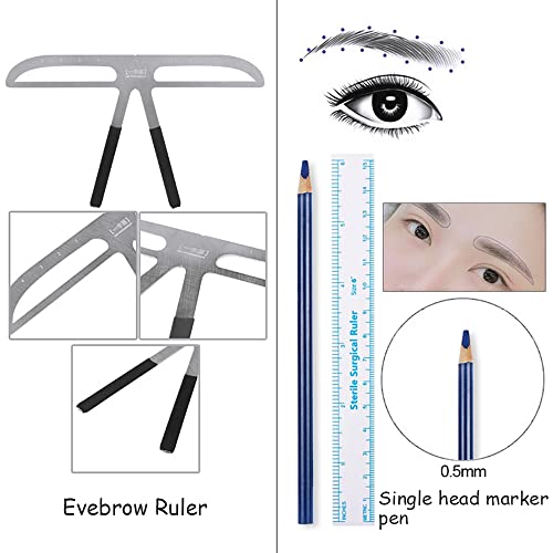 [Full Set Microblading Eyebrow Pen Kit]–Including 1 * Microblading Eyebrow Pen,1 * Pigment Ink (Dark Brown), 1 * Eyebrow Ruler 1 * Eyebrow Pencil ,1 * Practice Skin Tool of 6 Eyebrow Types, 10 * 14 Pin Needle 10* Finger Ring