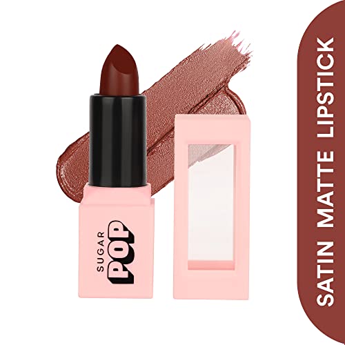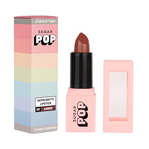 SUGAR POP Satin Matte Lipstick – 06 Amber (True Brown) – 3 gm – Infused with Vitamin E, Shea Butter & Jojoba Oil l Full Coverage, Ultra Pigmented, Hydrating, Weightless Formula l Lipstick for Women